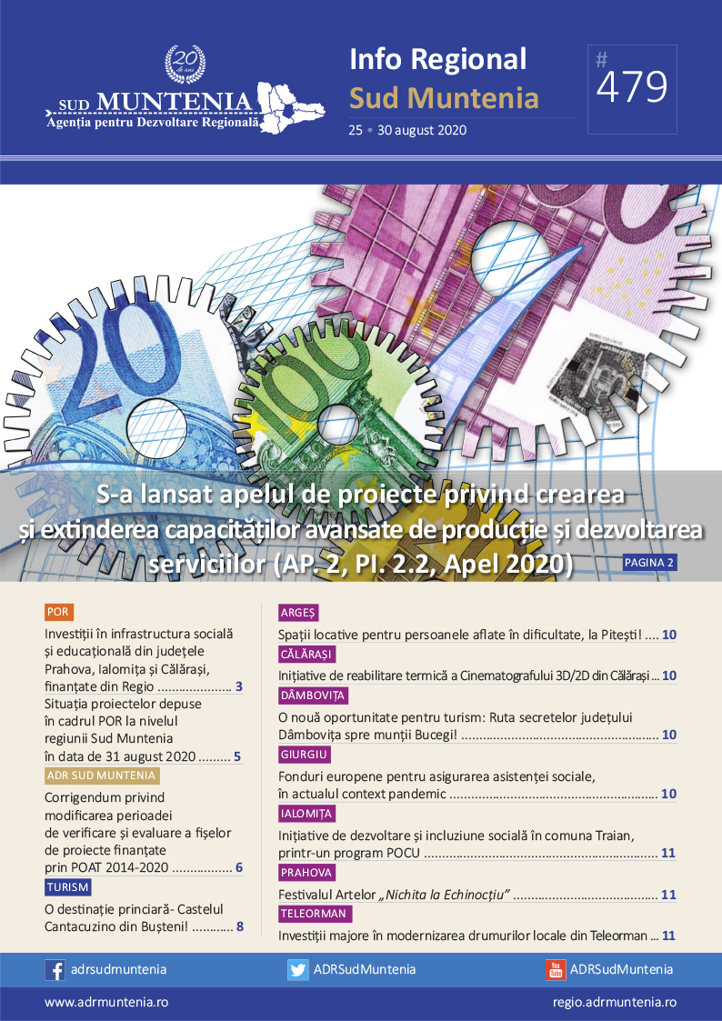 Publicaţia a ajuns la numărul 479 şi poate fi citită pe site-ul nostru la secţiunea Newsletter, link: https://www.adrmuntenia.ro/download_file/newsletter/497/info-regional-sud-muntenia-nr-479.pdf.